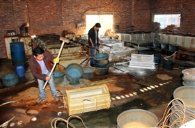 昨日上午,記者隨同環保執法人員前往子英村工業區。這兩家非法小電鍍均暗藏于一家名為“利德利機構”的廠房內,藏身隱蔽、設備簡陋,兩家非法小電鍍一大一小,小的設2個滾鍍槽1個掛鍍槽、大的設3個滾鍍槽2個掛鍍槽。雖然兩家小電鍍相隔不遠,但因所處廠房十分隱蔽,幾番左拐右拐后方能發現。記者看到,這兩家非法小電鍍的生產廢水未能處理,直接向下水道排放,從其加熱電鍍液的煤爐溫熱的跡象看,兩家小電鍍前夜仍在作業。